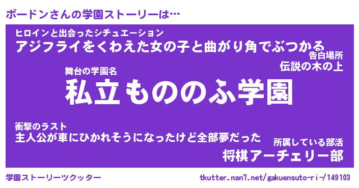 | 男性向けラノベタイトル風あだ名 | 『ボードンの憂鬱』 |
