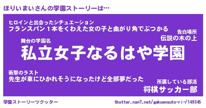 | ファンタジー風あだ名 | 『ホリフェル』『エターナルホリイマイー』 |