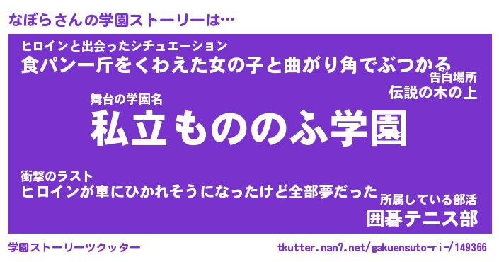 | 男性向けラノベタイトル風あだ名 | 『なぼらの憂鬱』 |