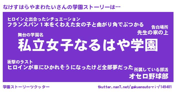 | 女子向けラノベタイトル風あだ名 | 『誰かこのなけすはらやまわたいを説明してください! ~契約から始まるウェディング~』 |
