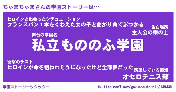 | 女子向けラノベタイトル風あだ名 | 『(仮)ちゃまちゃまのやんごとなき事情』 |
