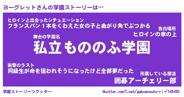 | 男性向けラノベタイトル風あだ名 | 『ヨーグレットの憂鬱』 |