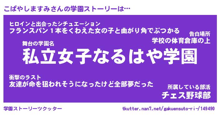| 女子向けラノベタイトル風あだ名 | 『こばやしますみ姫と円卓の騎士』 |