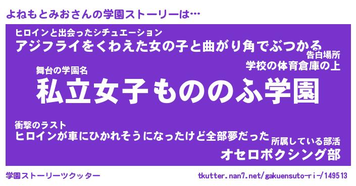 | ヒーロー風カッコイイあだ名 | 『スーパーヨネモトミオ』『天弓騎士ヨネ』 |