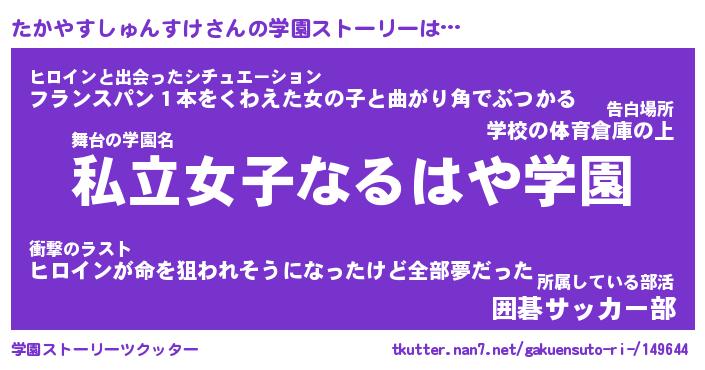 | 肩書あだ名 | 『たかやすしゅんすけ社長令嬢』 |