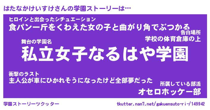 | 伝説のあだ名 | 『不死鳥のスナイパーはたなかけいすけ』 |