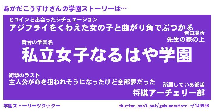 | 女子向けラノベタイトル風あだ名 | 『誰かこのあかだこうすけを説明してください! ~契約から始まるウェディング~』 |