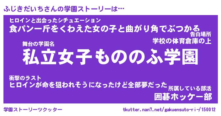 | 女子向けラノベタイトル風あだ名 | 『誰かこのふじきだいちを説明してください! ~契約から始まるウェディング~』 |
