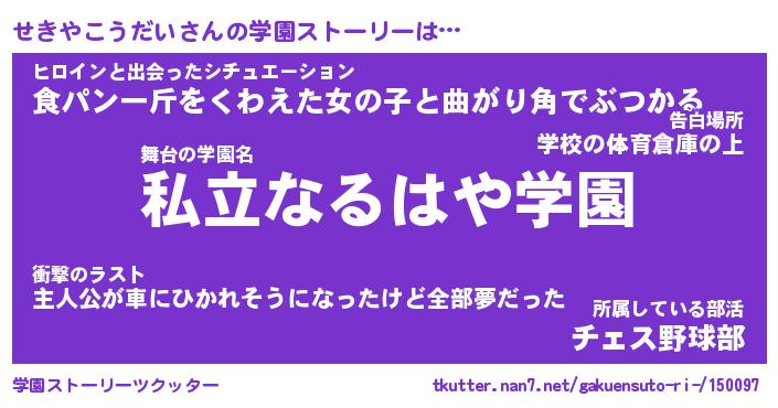 | 伝説のあだ名 | 『伝説のスナイパーせきやこうだい』 |
