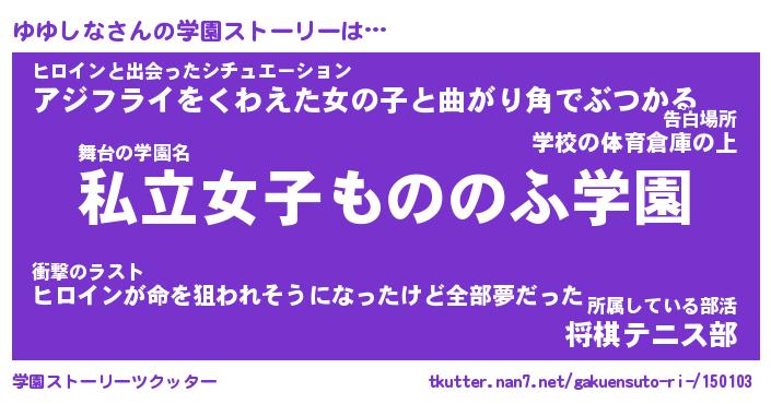 | ファンタジー風あだ名 | 『ユユフェル』『エターナルユユシナー』 |