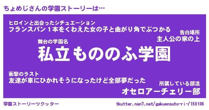 | 男性向けラノベタイトル風あだ名 | 『ちょめじの憂鬱』 |