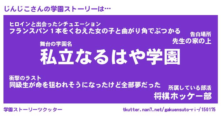 | 男性向けラノベタイトル風あだ名 | 『じんじこの憂鬱』 |