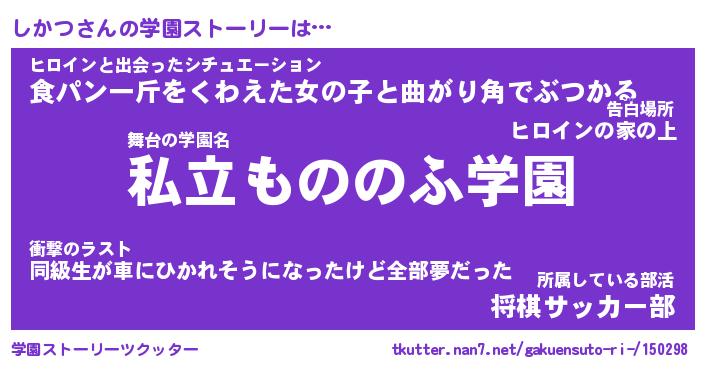 | 男性向けラノベタイトル風あだ名 | 『しかつの憂鬱』 |