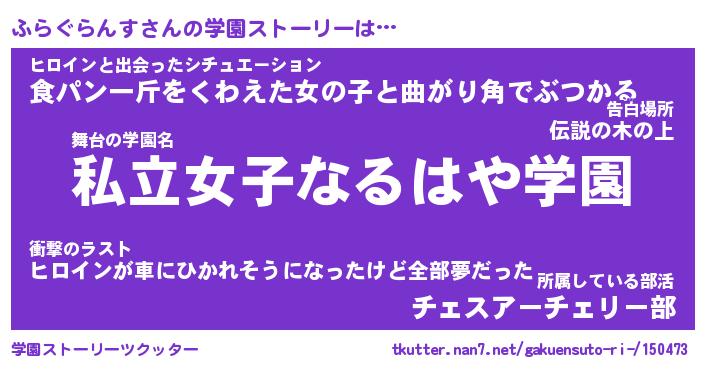 | 告白場所 先生の家の上 …「ふぃぎゅこ」 | 2月17日 06:24 |