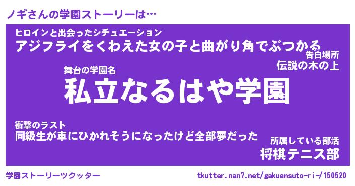 | 男性向けラノベタイトル風あだ名 | 『ノギの憂鬱』 |