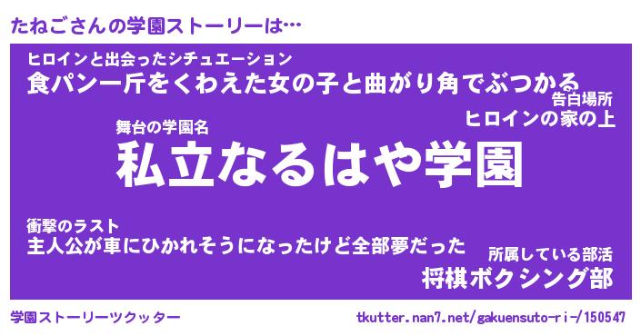 | ヒーロー風カッコイイあだ名 | 『スーパータネゴ』『ウルトラたねごマン』 |