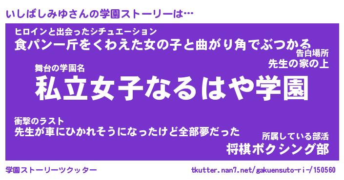 | ヒーロー風カッコイイあだ名 | 『スーパーイシバシミユ』『暗黒騎士イシ』 |