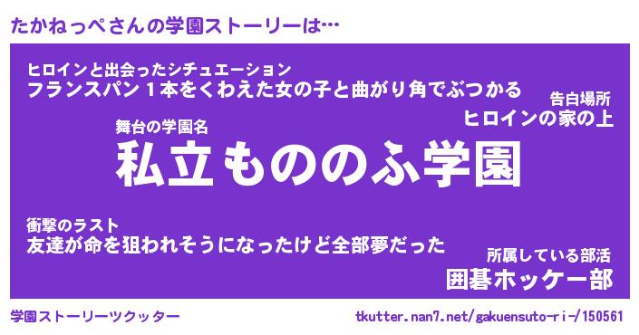 | 男性向けラノベタイトル風あだ名 | 『たかねっぺの憂鬱』 |