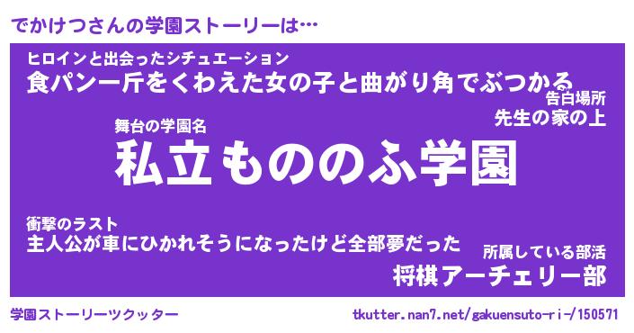 | 男性向けラノベタイトル風あだ名 | 『でかけつの憂鬱』 |