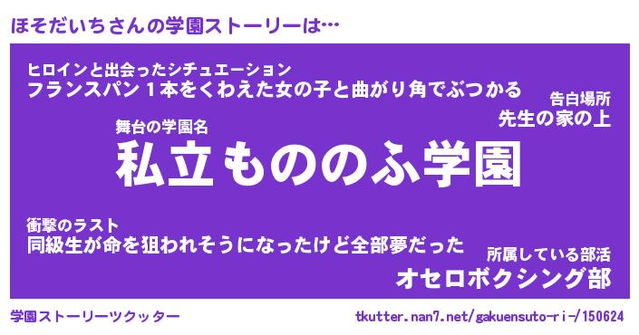 | 男性向けラノベタイトル風あだ名 | 『ほそだいちの憂鬱』 |
