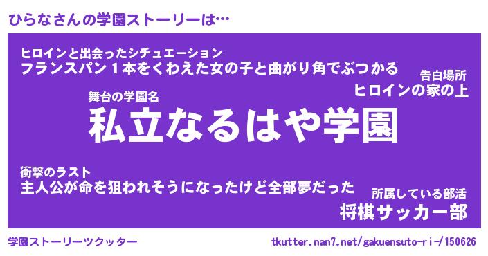 | 伝説のあだ名 | 『伝説のスナイパーひらな』 |