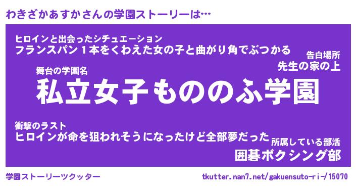 | 女子向けラノベタイトル風あだ名 | 『誰かこのわきざかあすかを説明してください! ~契約から始まるウェディング~』 |