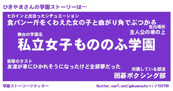 | 女子向けラノベタイトル風あだ名 | 『ひきやま姫と円卓の騎士』 |