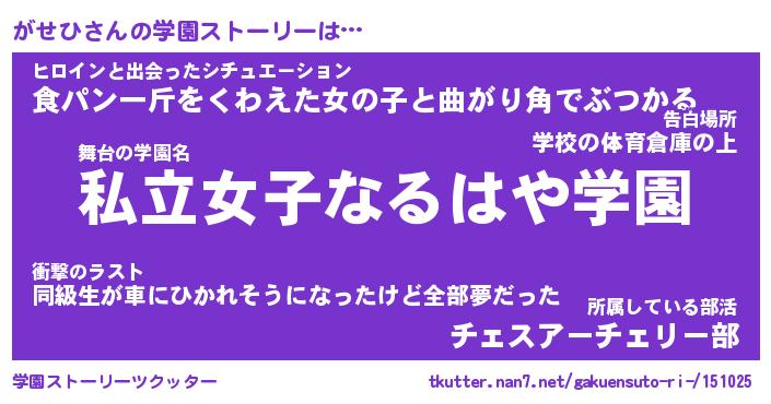 | ヘコむあだ名 | 『がせもー』『なまこ酢』『がせ太郎』 |