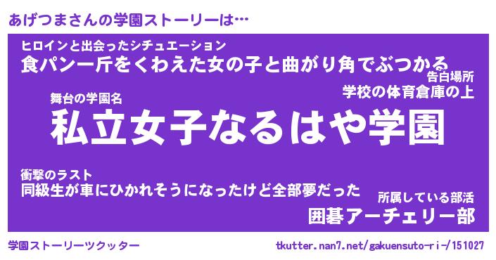 | ファンタジー風あだ名 | 『アゲフェル』『エターナルアゲツマー』 |