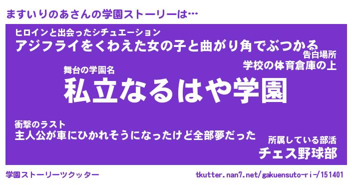 | 胡散臭い通販商品みたいなあだ名 | 『必ず成功する水晶球…その名も「ますいりのあ」』 |