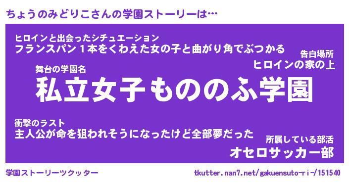 | ヒーロー風カッコイイあだ名 | 『スーパーチョウノミドリコ』 |