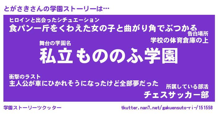 | 男性向けラノベタイトル風あだ名 | 『とがさきの憂鬱』 |