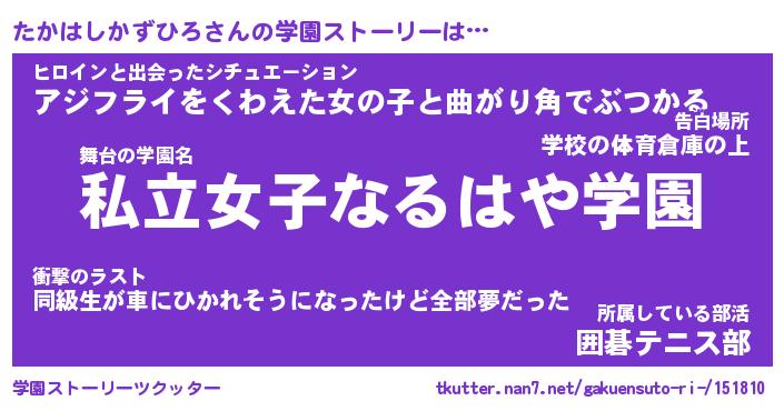 | 肩書あだ名 | 『たかはしかずひろ店長』 |