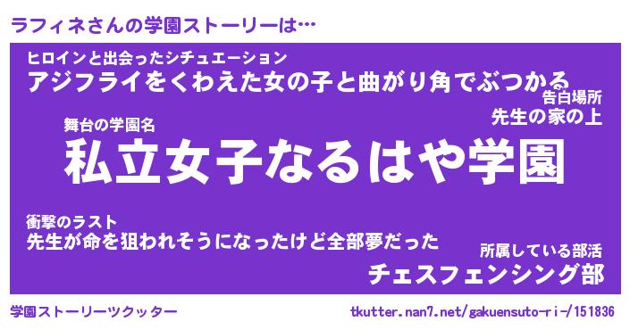 | ファンタジー風あだ名 | 『ラフフェル』『エターナルラフィネー』 |