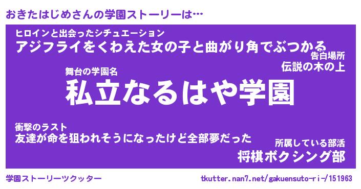 | 男性向けラノベタイトル風あだ名 | 『おきたはじめの憂鬱』 |