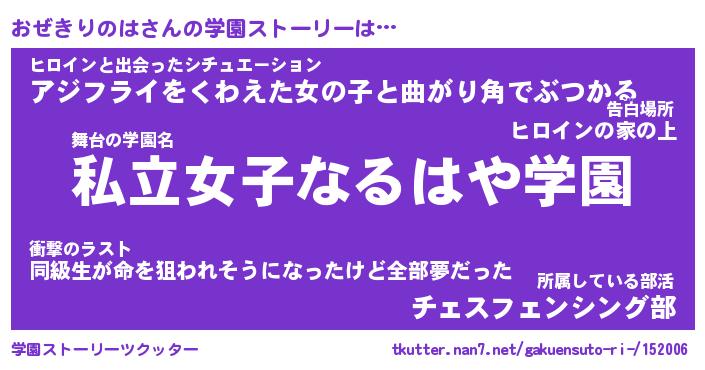 | 伝説のあだ名 | 『封印されしスナイパーおぜきりのは』 |