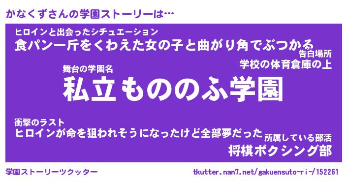 | 男性向けラノベタイトル風あだ名 | 『かなくずの憂鬱』 |