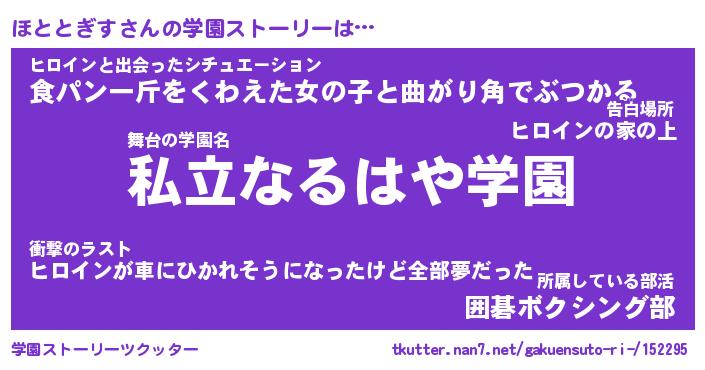 | 男性向けラノベタイトル風あだ名 | 『ほととぎすの憂鬱』 |