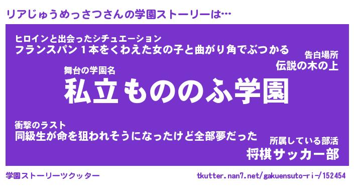 | 男性向けラノベタイトル風あだ名 | 『リアじゅうめっさつの憂鬱』 |