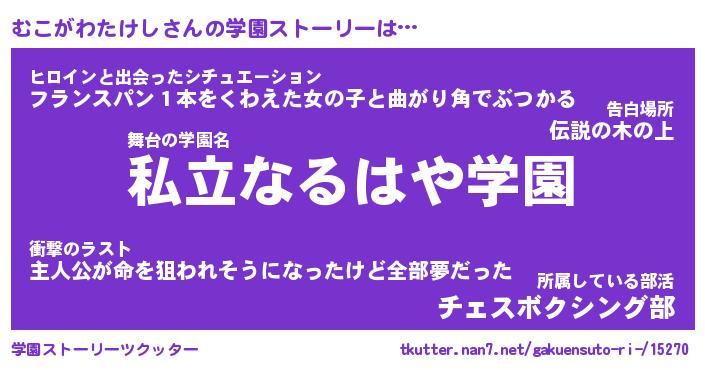 | 男性向けラノベタイトル風あだ名 | 『むこがわたけしの憂鬱』 |