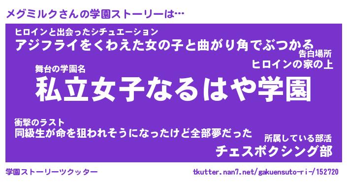 | ファンタジー風あだ名 | 『メグフェル』『エターナルメグミルクー』 |