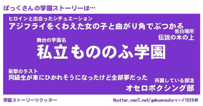 | 女子向けラノベタイトル風あだ名 | 『(仮)ぱっくのやんごとなき事情』 |