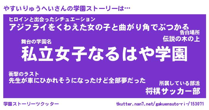 | 肩書あだ名 | 『やすいりゅうへい御曹司』 |