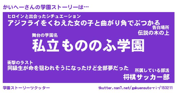 | 男性向けラノベタイトル風あだ名 | 『かいへーの憂鬱』 |