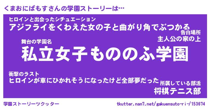 | 女子向けラノベタイトル風あだ名 | 『くまおにばもす姫と円卓の騎士』 |