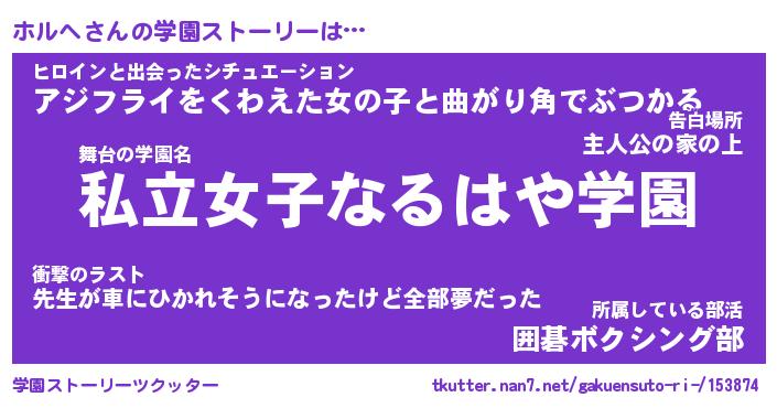 | 告白場所 先生の家の上 …「ふぃぎゅこ」 | 2月17日 06:24 |