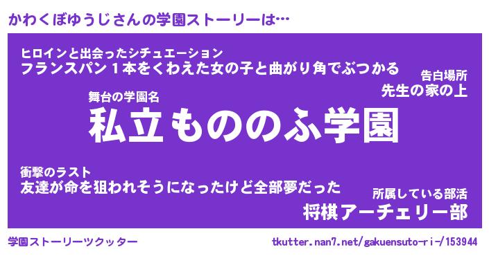 | 男性向けラノベタイトル風あだ名 | 『かわくぼゆうじの憂鬱』 |
