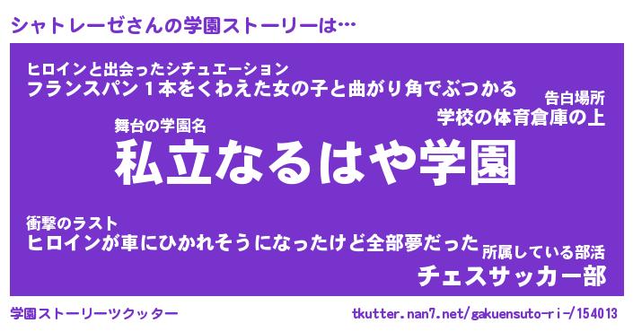 | ヒーロー風カッコイイあだ名 | 『スーパーシャトレーゼ』『幻影騎士シャ』 |