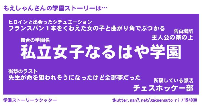 | 2回繰り返すあだ名 | 『もえもえ』『ももええ』『ぬめぬめ』 |
