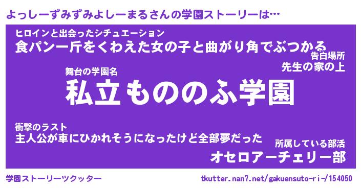 | 女子向けラノベタイトル風あだ名 | 『よっしーずみずみよしーまる姫と円卓の騎士』 |
